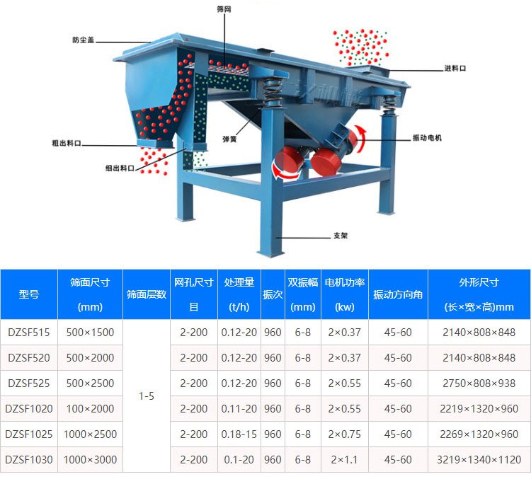 啟動機(jī)器,含有雜質(zhì)或有多種粒度的木屑被倒入木屑振動篩中后,同頻逆向電機(jī)產(chǎn)生的激振力讓木屑在篩網(wǎng)上散開并向前運(yùn)動,運(yùn)動過程中,木粉或石子等小顆粒的雜質(zhì)會漏到下方篩網(wǎng),大粒徑的木屑留在上層,達(dá)到篩分或除雜的目的。