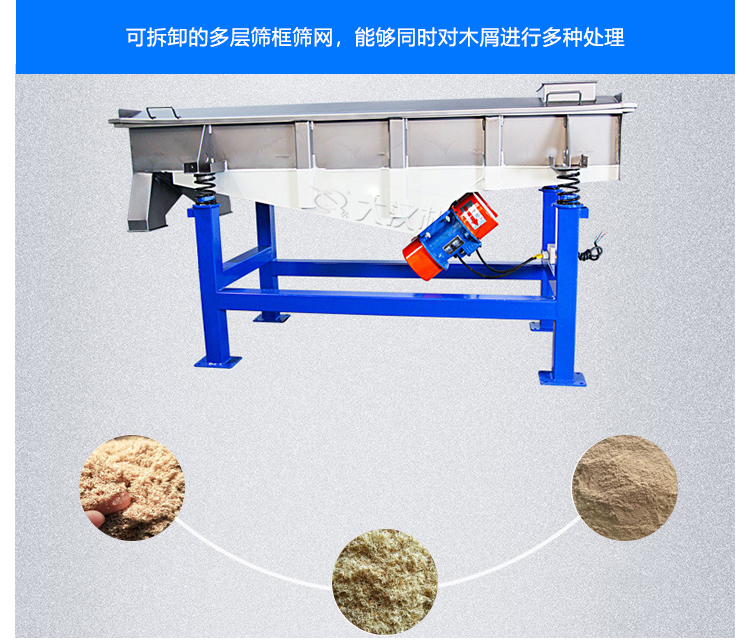 2、密封設(shè)計,避免在篩分過程中木屑木粉飄散;