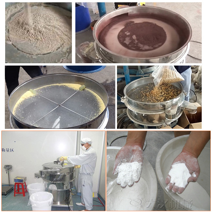 糯米粉旋振篩采用食品不銹鋼材質,適用于糯米粉的過濾除雜,其他米漿米粉過濾分級也可以使用。