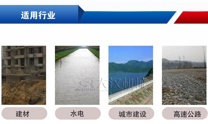 主要用于水電、建材、高速公路、城市建設(shè)等行業(yè),可用于銅礦、高嶺土、硅砂、鐵礦、滑石、溫石棉、方解石、螢石礦、硬質(zhì)石灰石、花崗石、玄武巖、河卵石、礦渣等多種物料。
