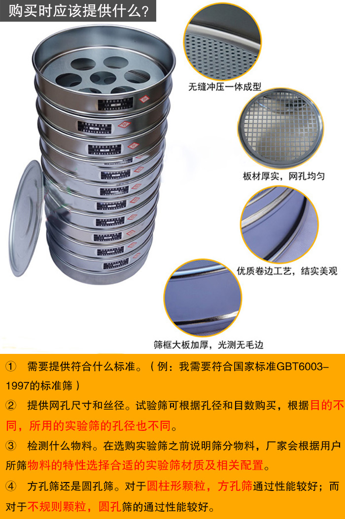 1、需要提供符合什么標(biāo)準(zhǔn)。(例:我需要符合國(guó)家標(biāo)準(zhǔn)GBT6003-1997的標(biāo)準(zhǔn)篩)