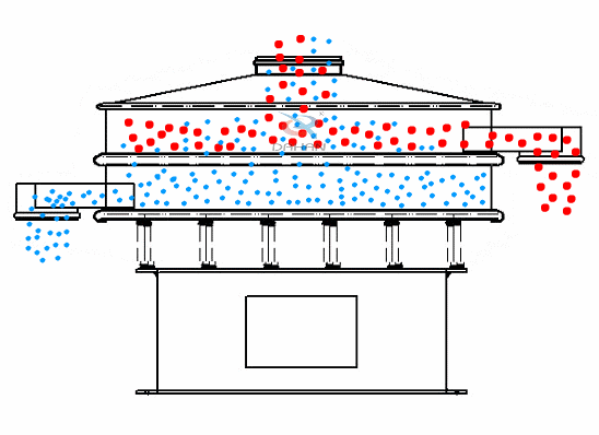 超聲波振動篩是在旋振篩的基礎(chǔ)上加裝一套超聲波換能器,其原理是將超聲波發(fā)生器與旋振篩結(jié)合在一起,超聲波振動篩的電源產(chǎn)生的高頻電通過換能器轉(zhuǎn)換成高頻正弦形式的縱向振蕩波,這些振蕩波傳到共振器上使共振器產(chǎn)生共振,然后由共振器將振動均勻地傳輸至篩面。篩網(wǎng)上的物料在做低頻三次元振動的同時,疊加上超聲波振動,既可以防止網(wǎng)孔堵塞,又可以提高篩分產(chǎn)量與精度。