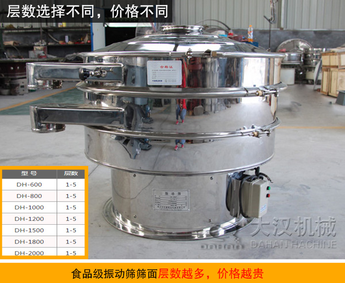大漢機械推薦一款專門用于食品行業(yè)的振動篩,即食品振動篩,食品振動篩對衛(wèi)生標(biāo)準(zhǔn)要求比較嚴(yán)格,所以整機采用304不銹鋼材質(zhì)。該設(shè)備干凈、衛(wèi)生、無死角,全部進行剖光處理,完全達(dá)到食品衛(wèi)生標(biāo)準(zhǔn)。新鄉(xiāng)大漢一臺食品振動篩價格在6000~15000元之間。但是不同型號、層數(shù)等不同,價格也會相應(yīng)有所變化。