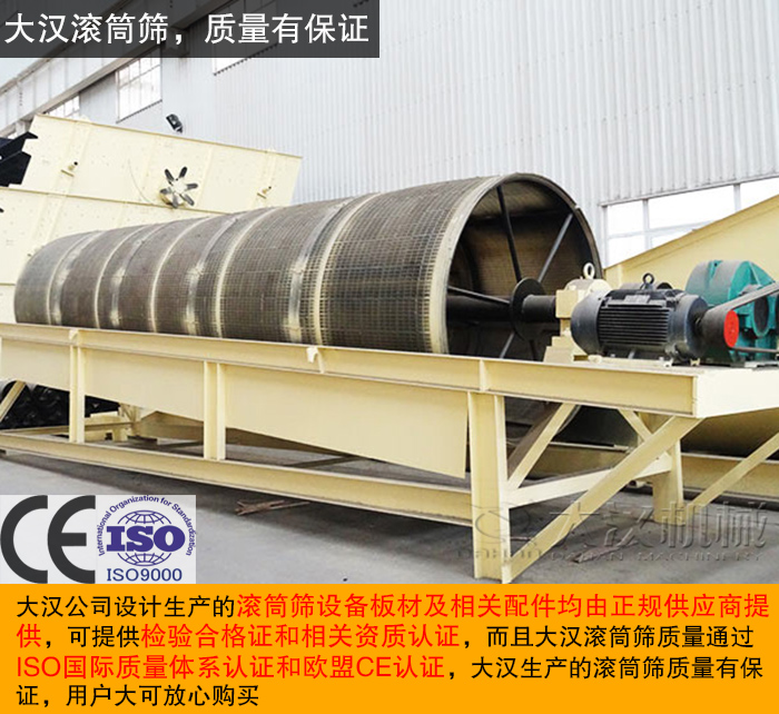 用戶再選購滾筒篩時(shí)注重的就是質(zhì)量,因?yàn)闈L筒篩質(zhì)量的好壞直接影響成品物料的質(zhì)量。大漢是一家擁有20多年生產(chǎn)經(jīng)驗(yàn)的振動(dòng)篩生產(chǎn)廠家,一直致力于振動(dòng)篩分設(shè)備的設(shè)計(jì)、研發(fā)工作,從設(shè)計(jì)到調(diào)試全程監(jiān)控,確保設(shè)備高質(zhì)量的同時(shí)又能符合用戶的生產(chǎn)要求。大漢公司設(shè)計(jì)生產(chǎn)的滾筒篩設(shè)備板材及相關(guān)配件均由正規(guī)供應(yīng)商提供,可提供檢驗(yàn)合格證和相關(guān)資質(zhì)認(rèn)證,而且大漢滾筒篩質(zhì)量通過ISO國際質(zhì)量體系認(rèn)證和歐盟CE認(rèn)證,大漢生產(chǎn)的滾筒篩質(zhì)量有保證,用戶大可放心購買。