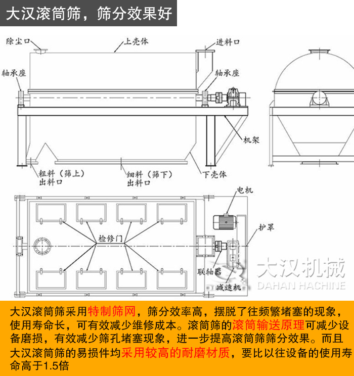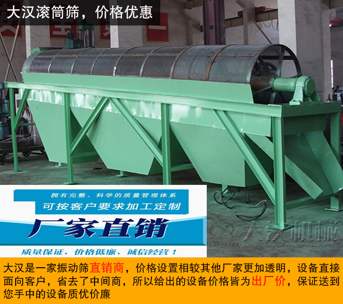 選購滾筒篩設(shè)備,優(yōu)選新鄉(xiāng)大漢。另外,滾筒篩型號種類齊全,各種型號的滾筒篩現(xiàn)貨直供,還可根據(jù)用戶需求進(jìn)行定制化生產(chǎn),質(zhì)優(yōu)價(jià)廉,歡迎前來選購。