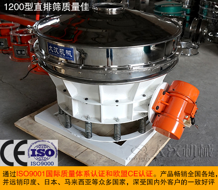 大漢1200型直排篩生產(chǎn)嚴(yán)格按照高標(biāo)準(zhǔn)執(zhí)行,該款設(shè)備通過ISO9001國際質(zhì)量體系認(rèn)證和歐盟CE認(rèn)證。產(chǎn)品暢銷全國各地,并遠銷印度、日本、馬來西亞等眾多國家,深受國內(nèi)外客戶的一致好評。