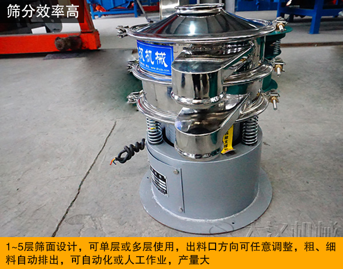 不銹鋼振動篩配置有彈跳球清網(wǎng)裝置,可減少奶粉篩分過程中造成的篩孔堵塞現(xiàn)象,提高篩分效率。此外,大漢不銹鋼振動篩有1~5層篩面設(shè)計,可單層或多層使用,出料口方向可任意調(diào)整,粗、細料自動排出,可自動化或人工作業(yè),產(chǎn)量大。