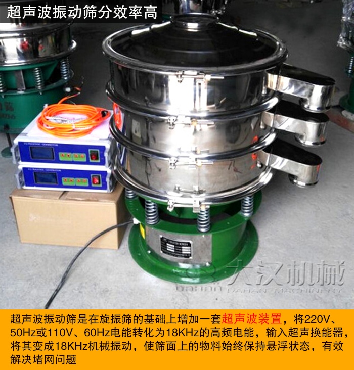 由于羅漢果粉易吸潮,且有粘性,使用普通旋振篩極易出現(xiàn)堵網(wǎng)的現(xiàn)象,所以大漢廠家推薦大家使用超聲波振動(dòng)篩。