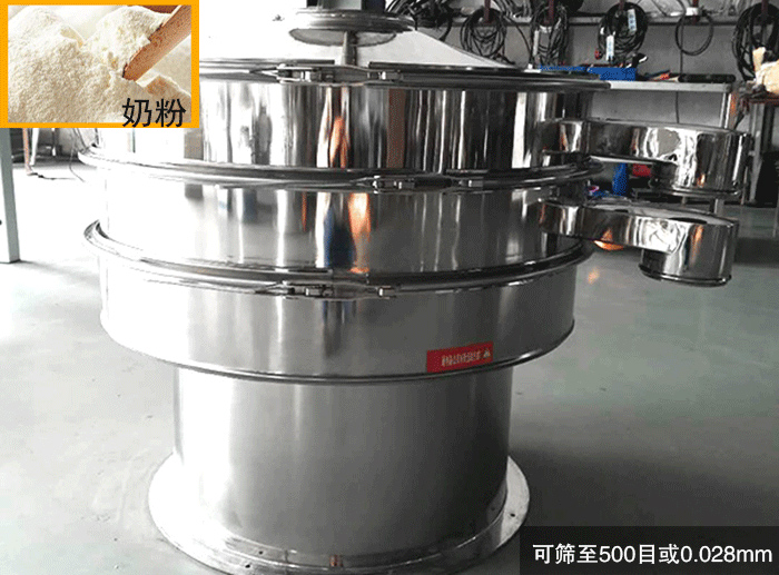 食品振動篩可篩至500目或0.028mm,篩分精度高,非常適合全脂乳粉行業(yè)高精度的篩分需要。