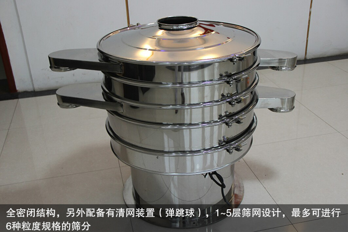 食品振動篩采用全密閉結(jié)構(gòu),另外配備有清網(wǎng)裝置(彈跳球),1~5層篩網(wǎng)設(shè)計,多可進(jìn)行6種粒度規(guī)格的篩分,可進(jìn)行連續(xù)化作業(yè),篩分效率高。