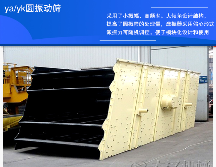 YA/YK圓振動(dòng)篩采用了小振幅、高頻率、大傾角設(shè)計(jì)結(jié)構(gòu),可以通過改變傾角去改變物料沿篩面的運(yùn)動(dòng)速度,從而提高了圓振篩的處理量,YA/YK圓振動(dòng)篩激振器采用偏心形式,不僅使激振器偏心質(zhì)量單重激振力增大,而且激振力可隨機(jī)調(diào)控,便于模塊化設(shè)計(jì)和使用。