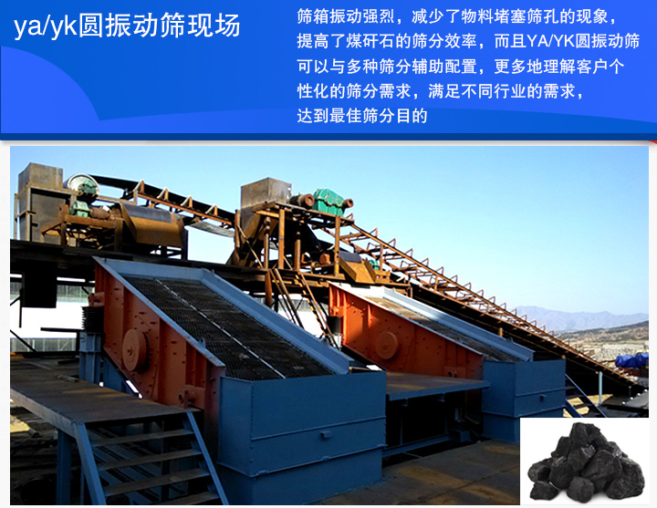 YA/YK圓振動(dòng)篩篩箱振動(dòng)強(qiáng)烈,減少了物料堵塞篩孔的現(xiàn)象,提高了煤矸石的篩分效率,而且YA/YK圓振動(dòng)篩可以與多種篩分輔助配置,更多地理解客戶個(gè)性化的篩分需求,滿足不同行業(yè)的需求,達(dá)到佳篩分目的。