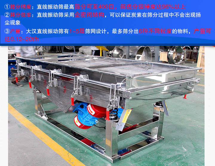 炭素直線振動篩篩分效果主要從以下3個方面進行介紹: