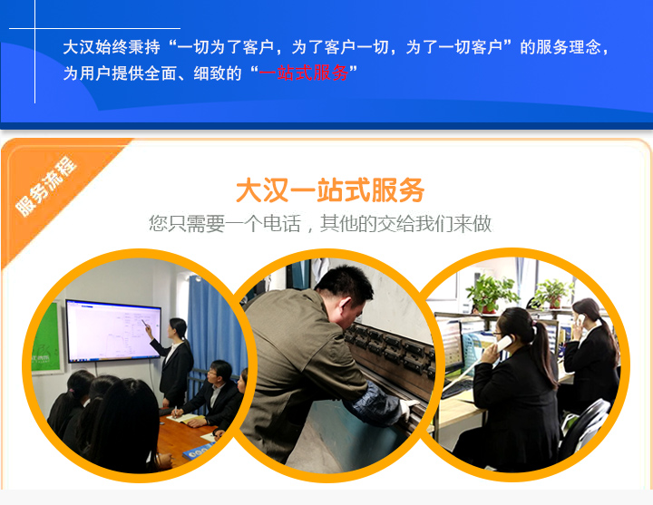 大漢始終秉持“一切為了客戶,為了客戶一切,為了一切客戶”的服務(wù)理念,為用戶提供全面、細(xì)致的“一站式服務(wù)”,專(zhuān)注于每一個(gè)服務(wù)細(xì)節(jié),以滿足用戶所需為己任,做值得用戶信賴的合作伙伴!