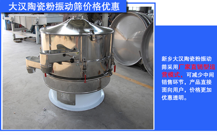 新鄉(xiāng)大漢陶瓷粉振動篩采用廠家直銷型運營模式,可減少中間銷售環(huán)節(jié),產(chǎn)品直接面向用戶,價格更加優(yōu)惠透明。