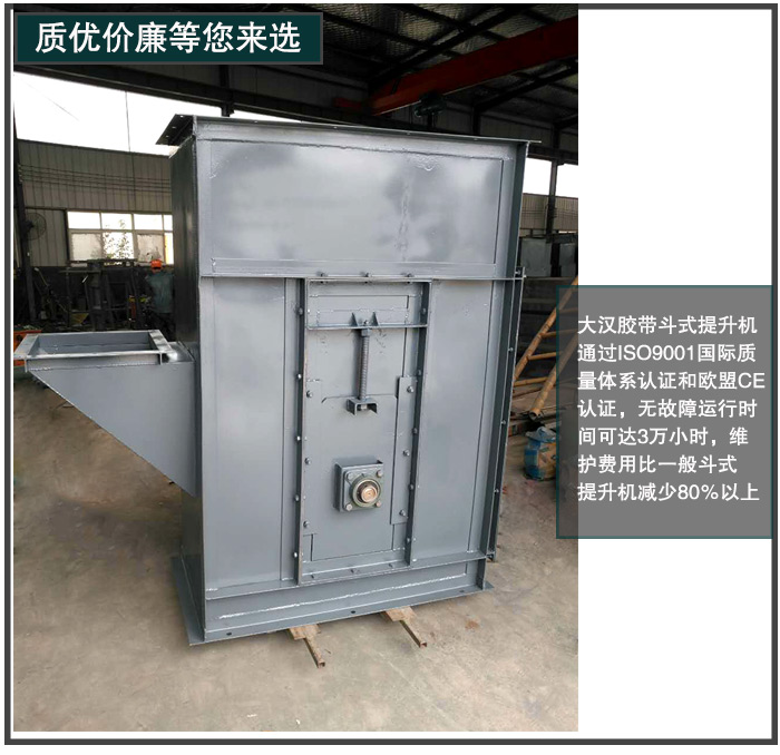 質(zhì)量高的產(chǎn)品,其使用價(jià)值就越高,一臺優(yōu)質(zhì)的膠帶斗式提示機(jī),無論在原材料的選取還是在制作工藝上都做到精益求精,所以會耗費(fèi)一定的時(shí)間成本和生產(chǎn)成本,可以減少用戶的維修成本。所以大漢在質(zhì)量上絲毫沒有松懈,生產(chǎn)嚴(yán)格按照國家標(biāo)準(zhǔn)化執(zhí)行,對產(chǎn)品質(zhì)量進(jìn)行實(shí)時(shí)監(jiān)測,在達(dá)到合格之后方可進(jìn)行下一步生產(chǎn),銷售,大漢膠帶斗式提升機(jī)質(zhì)量沒得說,通過ISO9001國際質(zhì)量體系認(rèn)證和歐盟CE認(rèn)證,提升機(jī)無故障運(yùn)行時(shí)間可達(dá)3萬小時(shí),維護(hù)費(fèi)用比一般斗式提升機(jī)減少80%以上,用戶可以放心購買。