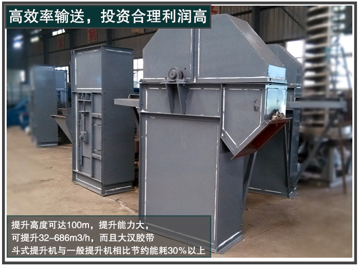 一臺設(shè)備都是用來投入生產(chǎn)的,所以效率對于衡量一臺設(shè)備的價(jià)格至關(guān)重要,因?yàn)樾矢?,對用戶的投入使用就越有利。大漢膠帶斗式提升機(jī)提升效率高,提升高度可達(dá)100m,提升能力大,可提升32-686m3/h,而且大漢膠帶斗式提升機(jī)與一般提升機(jī)相比節(jié)約能耗30%以上,更加能耗低。