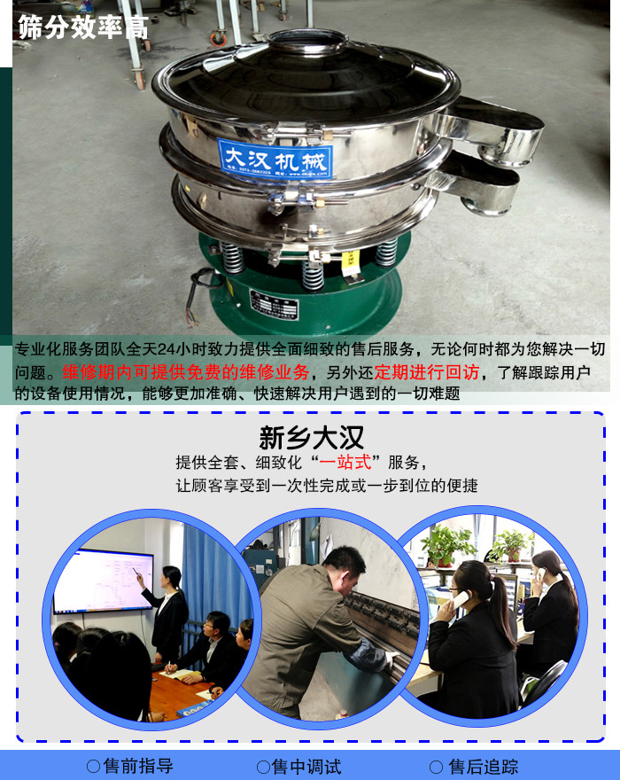一臺(tái)設(shè)備都是講求效率的,大漢300mm型不銹鋼振動(dòng)篩篩分細(xì)至500目或0.028mm,篩分精度高,另有1~5層篩面設(shè)計(jì),可以滿足用戶篩分產(chǎn)量的需要,出料口方向可任意調(diào)整,粗、細(xì)料自動(dòng)排出,可自動(dòng)化或人工作業(yè),產(chǎn)量大。