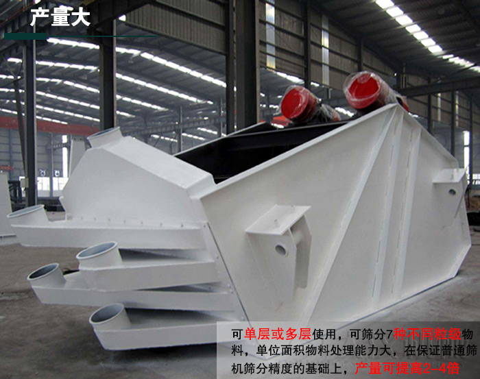 概率篩可單層或多層使用,可篩分7種不同粒級物料,單位面積物料處理能力大,在保證普通篩機(jī)篩分精度的基礎(chǔ)上,產(chǎn)量可提高2-4倍。而且概率篩人性化設(shè)計更便于機(jī)制砂行業(yè)的工藝布置。