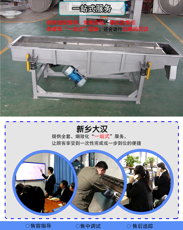 新鄉(xiāng)大漢始終以客戶服務(wù)為中心,不斷完善用戶的體驗(yàn)過(guò)程,提供選型指導(dǎo)、免費(fèi)安裝、調(diào)試及售后維修等“一站式”服務(wù),還會(huì)進(jìn)行定期的回訪。