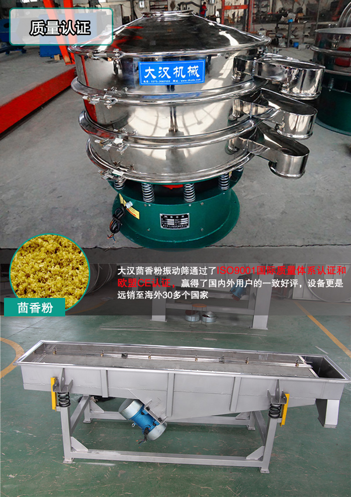 大漢茴香粉振動(dòng)篩—質(zhì)量認(rèn)證