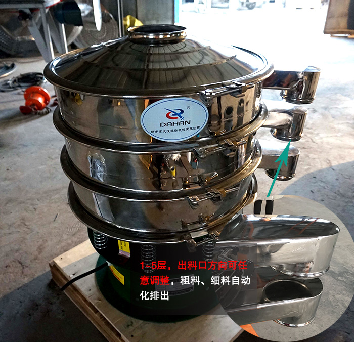 不銹鋼振動篩篩面層數(shù)有1~5層,出料口方向可任意調(diào)整,粗料、細(xì)料自動化排出,篩分更高效。