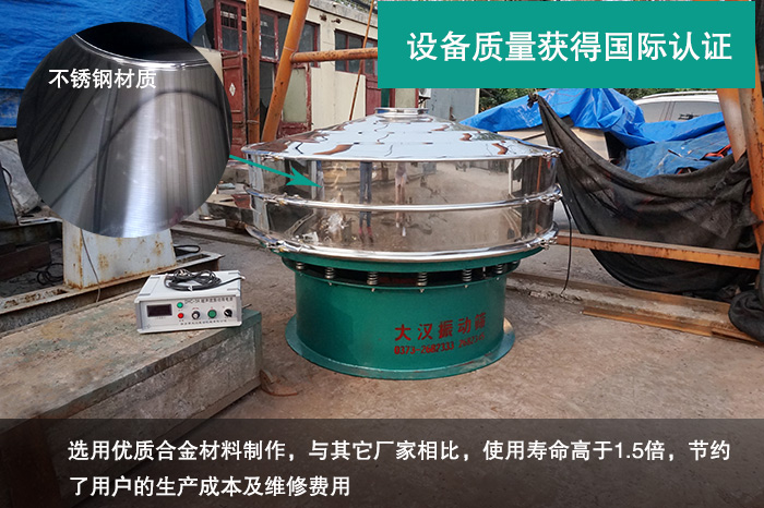 大漢超聲波旋振篩質(zhì)量達(dá)標(biāo),選用優(yōu)質(zhì)合金材料制作,重點(diǎn)部件耐磨性強(qiáng),設(shè)備的性能穩(wěn)定,能夠連續(xù)高效運(yùn)轉(zhuǎn),故障率低,相比較其他廠家的一米超聲波旋振篩,使用壽命提高1.5倍,節(jié)約了用戶的生產(chǎn)成本及維修費(fèi)用,為用戶創(chuàng)造高收益。