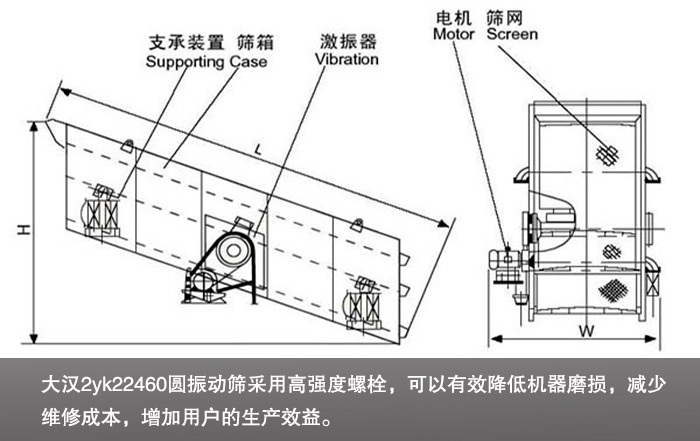 大漢2yk2460圓振動篩可與多種篩分輔助配置,更好地理解客戶個性化的篩分需求,滿足不同行業(yè)的需求,達(dá)到佳篩分目的。