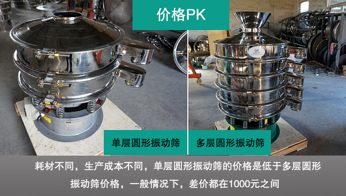 單層圓形振動篩相對多層圓形振動篩而言,其耗材更少,廠家的設(shè)計和生產(chǎn)成本也會相對更低,所以普遍來首,單層圓形振動篩的價格是低于多層圓形振動篩價格的,一般情況下,差價都在1000元之間。