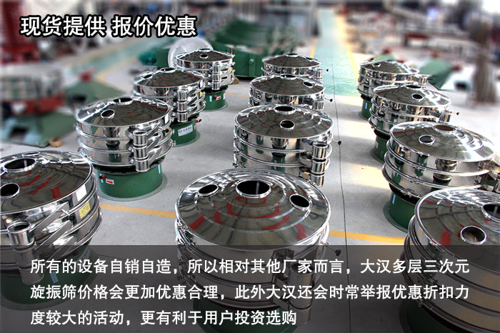 大漢是屬于直銷型的廠家,所有的設(shè)備自銷自造,所以相對(duì)其他廠家而言,大漢多層三次元旋振篩價(jià)格會(huì)更加優(yōu)惠合理,此外大漢還會(huì)時(shí)常舉報(bào)優(yōu)惠折扣力度較大的活動(dòng),更有利于用戶投資選購。