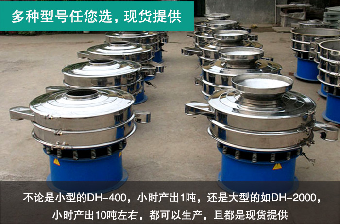 大漢廠家生產(chǎn)的金屬粉末振動(dòng)篩型號非常齊全,不論是小型的DH-400,小時(shí)產(chǎn)出1噸,還是大型的如DH-2000,小時(shí)產(chǎn)出10噸左右。都可以生產(chǎn),且都是現(xiàn)貨提供。