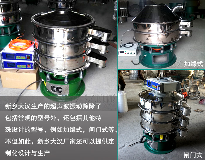 新鄉(xiāng)大漢生產(chǎn)的超聲波振動篩包括DHC-400,DHC-600,DHC-800等常規(guī)的型號,還包括其他特殊設(shè)計(jì)的型號,例如加緣式等,不但如此,新鄉(xiāng)大漢廠家為了更好滿足用戶所需,還可以提供定制化設(shè)計(jì)與生產(chǎn),可以針對用戶實(shí)際情況進(jìn)行設(shè)計(jì),大化滿足用戶所需。
