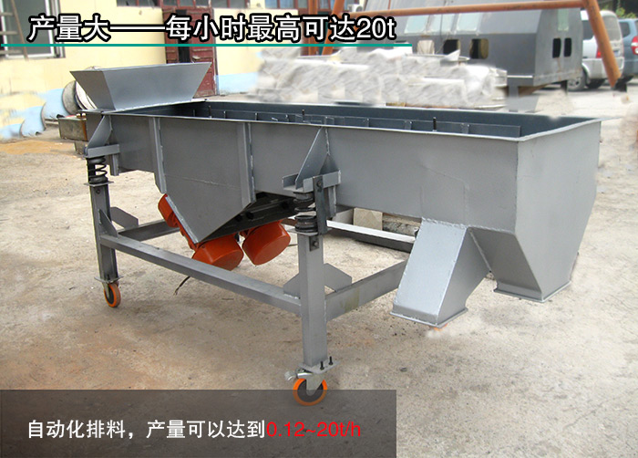 直線(xiàn)振動(dòng)篩篩面層數(shù)高可達(dá)5層,用戶(hù)可以根據(jù)篩分產(chǎn)量的大小選擇合適層數(shù)的直線(xiàn)振動(dòng)篩。另外,直線(xiàn)振動(dòng)篩可以自動(dòng)化排料,產(chǎn)量可以達(dá)到0.12~20t/h。
