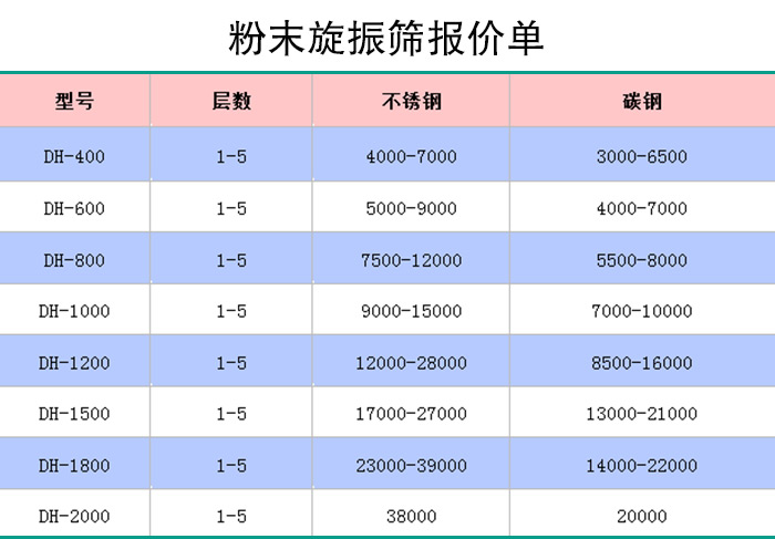 大漢一臺粉末振動篩價格在4000~22000元之間,詳細可參考下列表格: