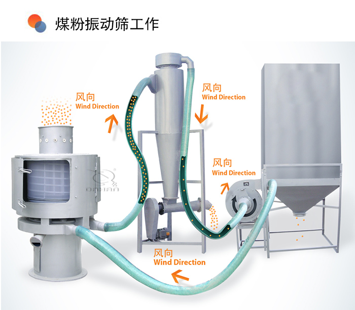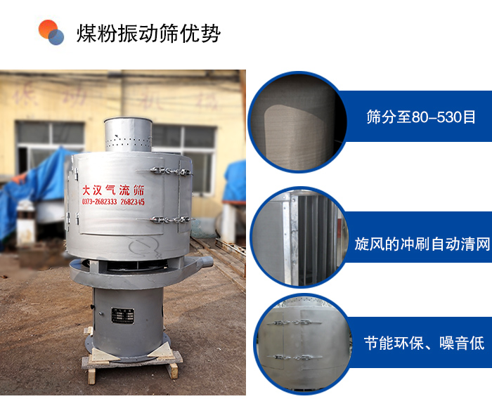 1、可以將煤粉篩分至80-530目,篩分效率可達(dá)到95%以上,產(chǎn)量是普通振動(dòng)篩的5-10倍或更高;