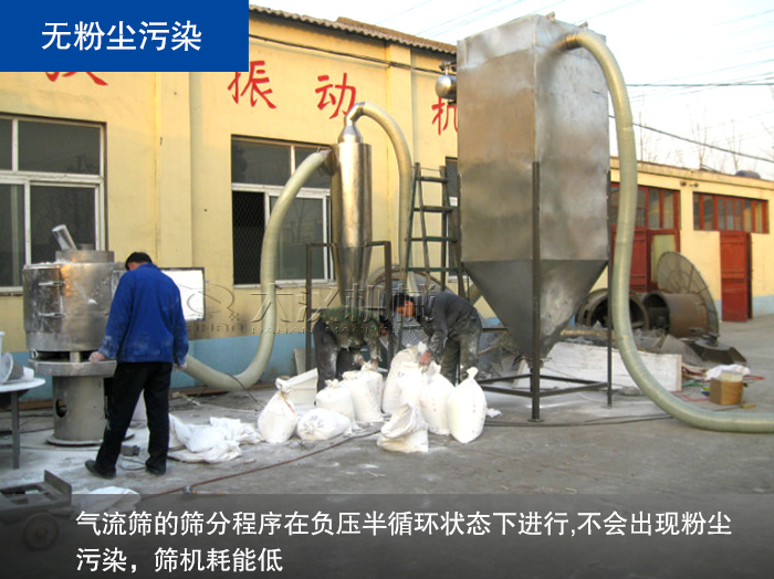 碳化鎢粉在篩分環(huán)節(jié)會出現(xiàn)揚(yáng)塵現(xiàn)象,對篩分環(huán)境造成影響。氣流篩的篩分程序在負(fù)壓半循環(huán)狀態(tài)下進(jìn)行,可以連續(xù)作業(yè),并且不會出現(xiàn)粉塵污染,篩機(jī)耗能低,更加地能耗低。