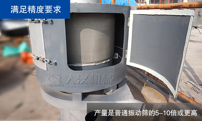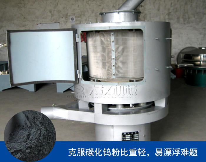 碳化鎢粉比重較輕,使用普通的振動篩很難進(jìn)行篩分。氣流篩利用了微細(xì)粉料的質(zhì)量小、輕、流動性好、易飄浮等特點,通過將麥糠充分?jǐn)U散到氣流中,使麥糠以單個微粒依次隨氣流透過篩網(wǎng),通過負(fù)壓氣流將物料與空氣混合后,進(jìn)入篩機(jī)風(fēng)輪中間,通過風(fēng)輪葉片施加足夠的離心力,向桶型篩網(wǎng)噴射過網(wǎng),經(jīng)過蝸殼收集,實現(xiàn)對碳化鎢粉的篩分目的。
