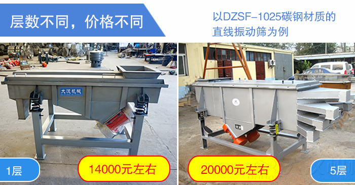 直線振動篩每相差一個型號,其價格就會升高1000-2000元,除此以外,其價格還是設(shè)備材質(zhì),層數(shù)的影響,主要分析如下: