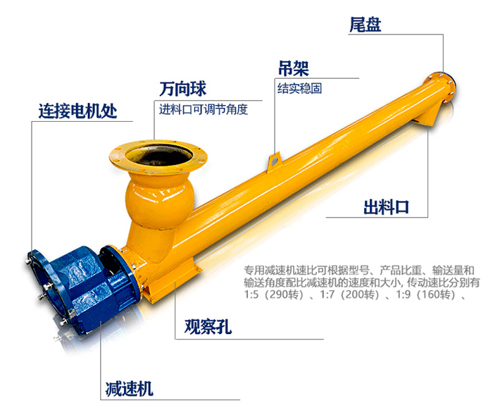 6、使用減速機重型設(shè)備,具有扭矩大、輸送力更強、噪音低的特點。