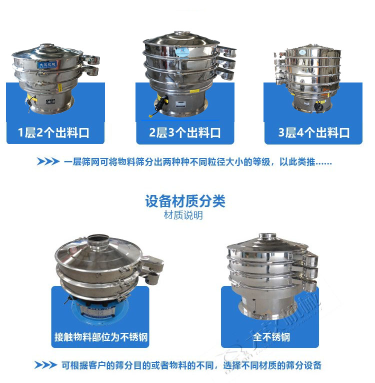 不銹鋼振動(dòng)篩有1-5層篩網(wǎng),可以將中藥粉分成2-6種規(guī)格: