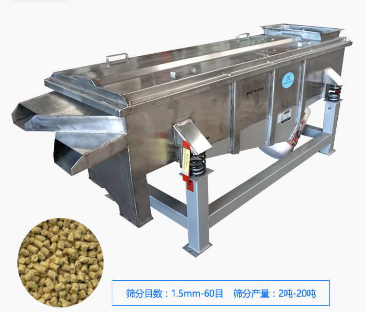 直線篩在飼料生產(chǎn)中,可以用于飼料原料的篩分和顆粒飼料的篩分中。