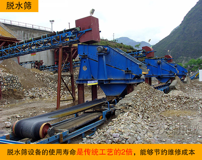 尾礦雖是選礦、冶煉過程中產(chǎn)生的廢棄物,同時也是潛在的二次資源,在國家大力推行能耗低減排的的政策號召下,尾礦干排將成為今后尾礦處理的一個重要方向。一般來說,尾礦干排用到的振動篩是脫水篩,脫水篩是一種新型的尾礦處理設(shè)備,主要作用是脫水、脫泥、脫介,可用于砂石料長廠水洗砂、選煤廠煤泥回收、選礦廠尾礦干排等。脫水篩主要優(yōu)勢如下: