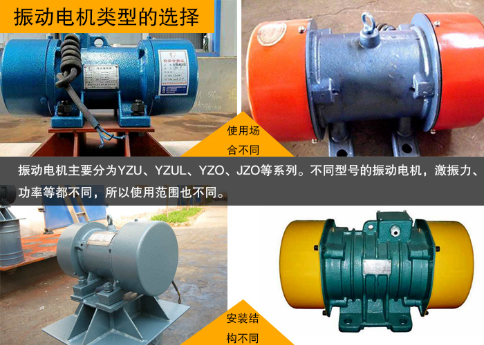 振動電機主要分為YZU、YZUL、YZO、JZO等系列。不同型號的振動電機,激振力、功率等都不同,所以使用范圍也不同。