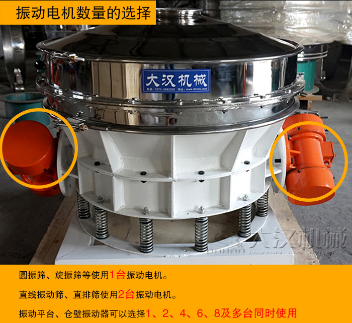 新鄉(xiāng)大漢所有振動篩產品所配備振動電機的功率都是經(jīng)過嚴密的技術理論計算和反復試驗后定型的,定型后的電機功率是振動篩的性能的到佳狀態(tài),包括篩分效果與使用壽命,用戶可放心選購。