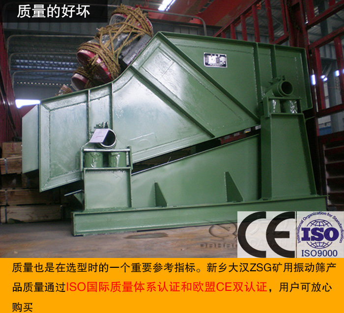 如果設(shè)備頻繁出現(xiàn)故障,必然是費(fèi)時(shí)費(fèi)力還影響生產(chǎn),所以質(zhì)量也是在選型時(shí)的一個(gè)重要參考指標(biāo)。選對一個(gè)好廠家一切問題均可解決,選用的機(jī)型的各個(gè)零部件也要是標(biāo)準(zhǔn)化和系列化的,因?yàn)榈V用振動(dòng)篩體積普遍比較大,而且基本都是露天作業(yè),處理的物料也都是礦料,惡劣的生產(chǎn)環(huán)境容易使篩機(jī)出現(xiàn)大大小小的故障,質(zhì)量好的機(jī)型可以有效的節(jié)約維修時(shí)間和成本。新鄉(xiāng)大漢ZSG礦用振動(dòng)篩產(chǎn)品質(zhì)量通過ISO國際質(zhì)量體系認(rèn)證和歐盟CE雙認(rèn)證,用戶可放心購買。