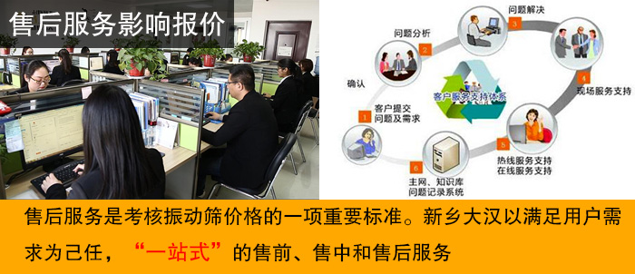 售后服務(wù)是考核振動(dòng)篩價(jià)格的一項(xiàng)重要標(biāo)準(zhǔn)。但話說回來售后服務(wù)也只有合作了才知道。但我們在購買前期可以通過視頻、圖片、實(shí)地考察等形式來判斷該企業(yè)是否具有生產(chǎn)能力及售后服務(wù),新鄉(xiāng)大漢以滿足用戶需求為己任,“一站式”的售前、售中和售后服務(wù),不斷對用戶體驗(yàn)進(jìn)行改善和提升,以優(yōu)質(zhì)的品質(zhì)和周全的服務(wù)贏得了國內(nèi)外用戶的一致好評(píng),現(xiàn)有用戶已遍布全球30多個(gè)國家,設(shè)備保修期為1年。