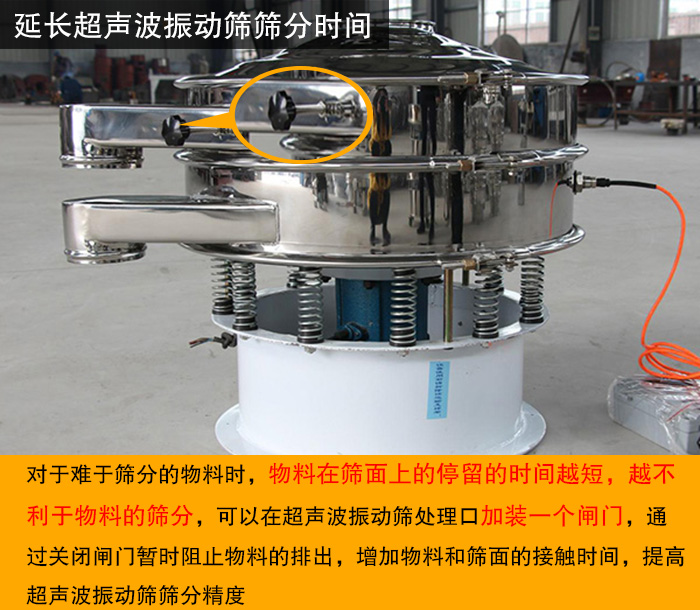 對于難于篩分的物料時,物料在篩面上的停留的時間越短,越不利于物料的篩分,因為難篩物料無法在短時間內(nèi)通過篩網(wǎng)透析,造成產(chǎn)能低下。介于此,大漢廠家通過在超聲波振動篩處理口加裝一個閘門,通過關閉閘門暫時阻止物料的排出,增加物料和篩面的接觸時間,提高超聲波振動篩篩分精度。