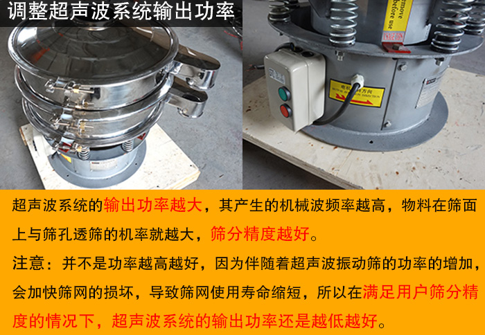超聲波系統(tǒng)是超聲波振動篩主要的部件,主要由超聲波振動電源與超聲波換能器組成。一般而言,超聲波系統(tǒng)的輸出功率越大,其產(chǎn)生的機械波頻率越高,物料在篩面上與篩孔透篩的機率就越大,篩分精度越好。但并不是功率越高越好,因為伴隨著超聲波振動篩的功率的增加,會加快篩網(wǎng)的損壞,導致篩網(wǎng)使用壽命縮短,所以在滿足用戶篩分精度的情況下,超聲波系統(tǒng)的輸出功率還是越低越好。