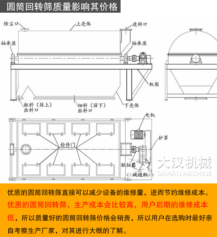 以上即是對(duì)圓筒回轉(zhuǎn)篩價(jià)格的分析,新鄉(xiāng)大漢作為圓筒回轉(zhuǎn)篩直銷廠家,無(wú)中間商賺取差價(jià),價(jià)格優(yōu)惠且相較合理,產(chǎn)品是直接面向客戶的,設(shè)備質(zhì)量通過(guò)ISO9001國(guó)際質(zhì)量體系認(rèn)證和歐盟CE雙認(rèn)證,售后服務(wù)好,是值得用戶信賴的合作伙伴。