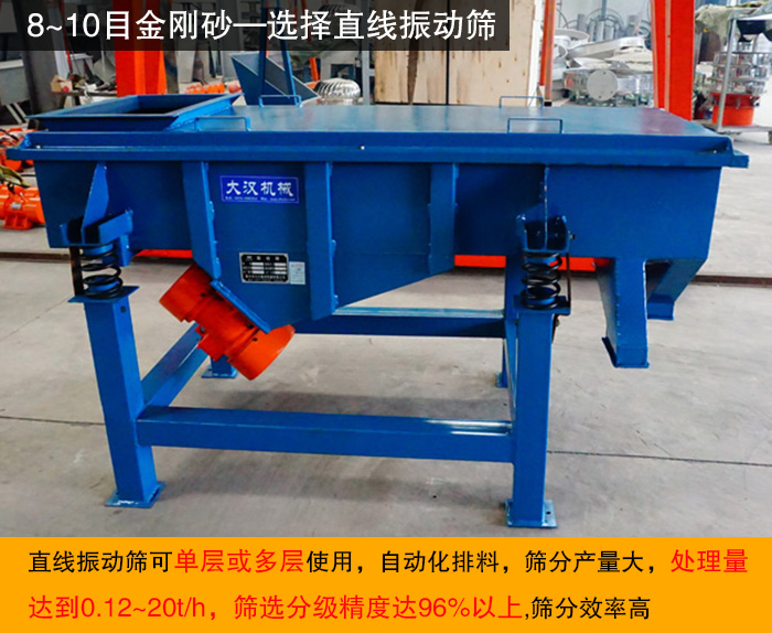 金剛砂目數(shù)在8-10目,對于這種顆粒比較大的金剛砂,推薦使用直線振動篩。
